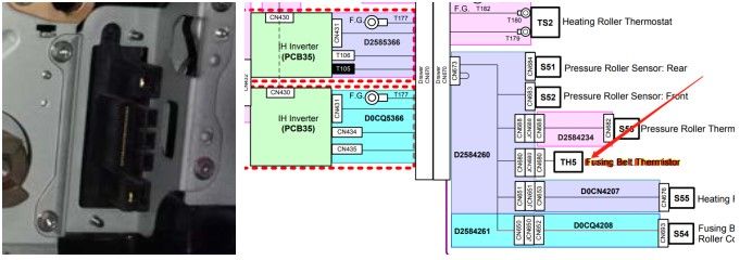 2、电路手册确定定影带热敏电阻(TH5)位置