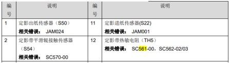 3、经过确定,定影带热敏电阻(TH5)位于定影前端,参照 SP 代码 1106 项目 查看SP1106-002 号定影温度显示:传感器 2:加热:前端 设备正常使用该选项温度是正常范围。出现 SC561 代码该数值显示为负值。 4、使用万用表检查,或者更换热敏电阻(AW100176),判定传感器是正常的。