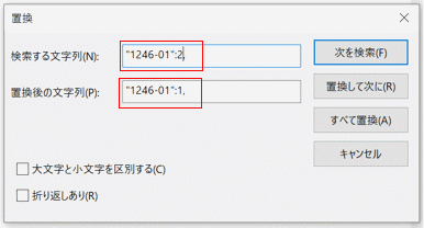 <注意>一定要输入正确,否则导入文件时会出现错误 点击“全部替换” 输入以下字母。查找内容:“1246-01”:2 ,替换为:1246-01":1 ,