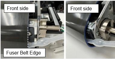 <注意>1)对于那些纸张边缘粗糙的纸张,往往会造成较深的皮带痕迹,这种情况下需要更频繁地进行皮带清洁,并且清洁次数要更多。2)请勿超过定影带零件的使用寿命。