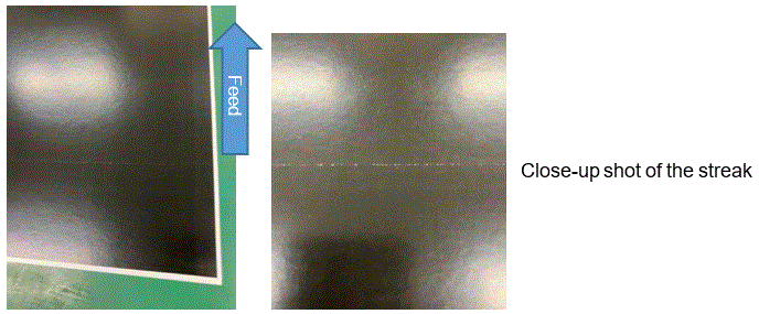 症状 光泽线,与进纸方向平行,横跨纸张。