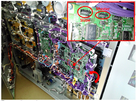 程序结束附录:通过调试线和 Teraterm 应用程序更改 SP 设置。 如果您对此操作不太熟悉,请提前与您的主管联系,以免在机器上犯任何错误。关掉引擎。 将调试电缆和 USB RS232C 转换电缆连接到引擎板上的主插槽。