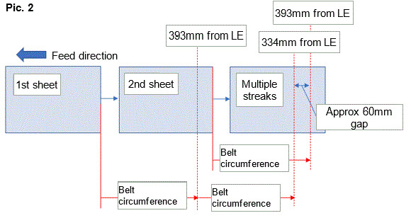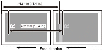 * 462mm(18.4 英寸)是定影带的周长。原因 碳粉中的蜡质成分会粘附在定影带上,并偏移到后续页面上,从而产生过多的光泽。当满足以下任一或两个条件时,出现问题的风险会增加:图像是实心的,由两种或多种颜色(= 高蜡含量)组成,并且在实心图像内部包含未打印的空白区域。 在工作的早期阶段,当熔接温度较高时