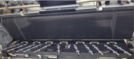 症状 涂料纸上沿进纸方向(水平)出现白色条纹。