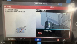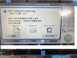 3、测试发现每次卡纸都在发生转印皮带处,两张A4 连接在一起,并且第一张中间紧贴第二张纸,在取出卡纸后提示纸张尺寸与设置不匹配,点‘装入纸张’后,打印继续