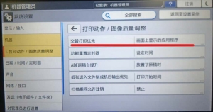 涉及机型: IMC2010-6010;IM2500-IM6000 症状: 客户反馈输出的作业,经常出现打印和复印作业交错混在一起了,无法区分; 维修过程: 1、 查看客户提供的出错作业,确实存在作业混乱的情况; 2、 现场测试发现当复印进行过程中,如果有打印任务进入机器,此时如果点击了屏幕上的打印图标进行打印,作业将暂停复印任务,切换到打印任务进行输出,待打印完成,再继续复印作业,最终导致复印和打印的作业交错混在一起,导致客户不满; 3、 执行SP5801-003及以后的总清,并对用户工具中硬盘初始化操作,发现问题依然存在,说明此情况并非用户设置被修改导致的; 4、 查看“用户工具—系统设置—机器—打印动作/图像质量调整”中有一个“交替打印优先”设置;