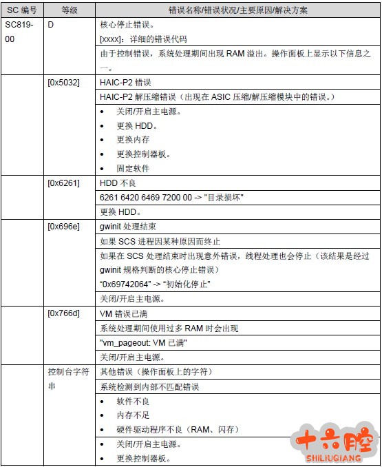症状 开机出现SC819-00 代码。 调整过程 1)查询维修手册SC819-00 注释见下图: