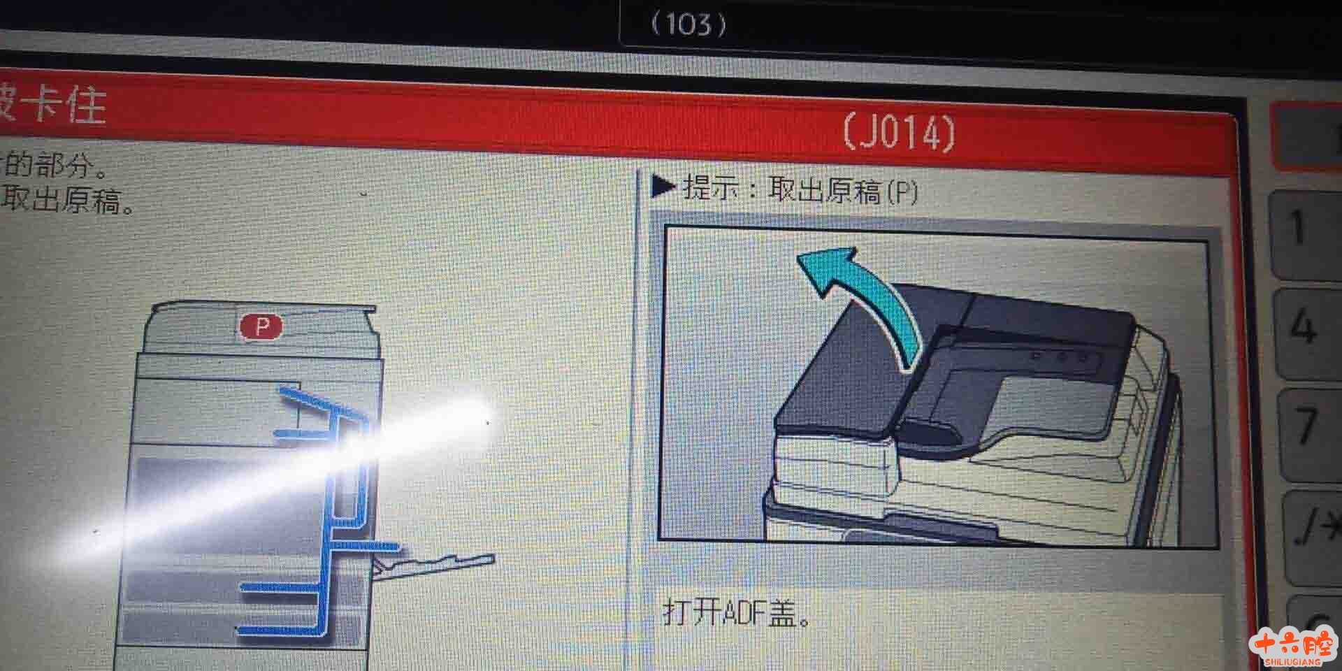 1.MP2555SP DF3090 在进行多份双面扫描时(一般原稿为20 分左右)最后一张扫描完毕显示卡纸,单面正常,故障提示如下: