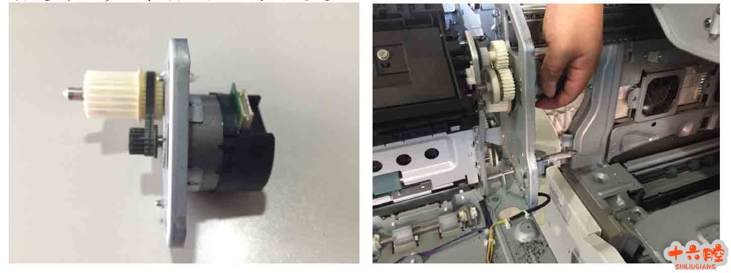 A3 印品在定影出纸部位卡住,而单位克重相同的A4 纸张则横送直送都能正常通过 分析过程: 根据单位克重相同的A4 纸张横送直送都能正常通过,判断传感器检测和纸路是正常的,在此前提下,印A3 纸张卡纸,除去纸张自身的因素,控制系统和驱动系统是否良好需要检测。测试定影出纸驱动电机,可以正常转动;拆卸该电机,发现该电机轴及所带的齿轮上面已经非常干涸,没有润滑油脂,可能是因此影响了该电机运转的稳定。