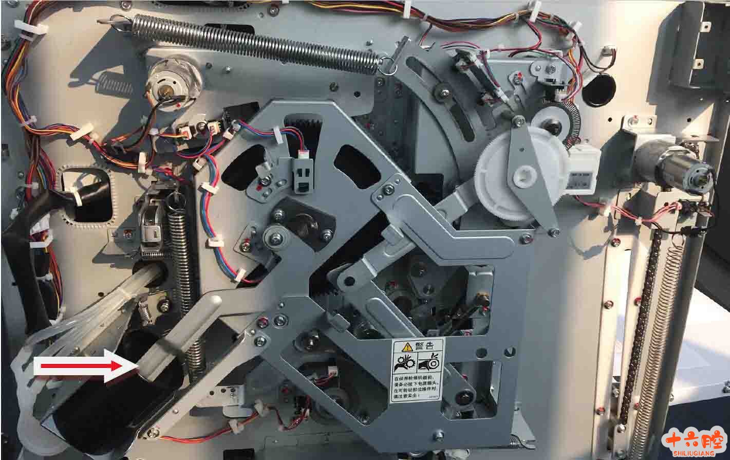 原因: E045 描述: 滚筒位置1 传感器错误. 当滚筒位置传感器1 在滚筒旋转40 秒后未检测到滚筒拆卸检测边缘。 断开/接头连接不良。 滚筒位置传感器1 故障. 维修过程 1、现场工程师检测滚筒位置-1 传感器输出正常. 2、拆除前盖板,分别交换测试主板,故障依旧。 4、拆除机器后盖板,检查发现主电机负载过大的原因是内气泵有纸灰造成阻力过大,润滑不良。(见下图2)