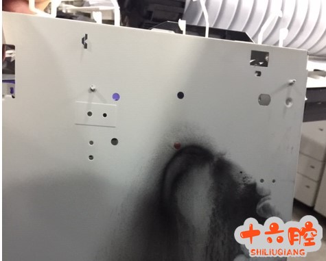 理光MP3055SP 色粉传送过程中漏粉,MP_2555SP_3055SP_3555SP_4055SP_5055SP_6055SP MP3055SP色粉传送过程中漏粉。见图(一),控制器箱背面有明显的漏粉痕迹