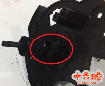 2、根据图(二)所示,判断下粉弹簧拱起是上封口开胶导致漏粉的主要原因。下粉弹簧的正确位置见图(三)图(四)