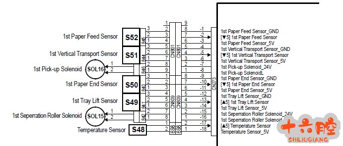 理光MP6002,7502,9002的机器所有纸盒不能检测纸(不能使用),手送可以使用,出现该问题的情况是:之前是好的机器,由于用户搬店铺,机器也搬移了,但是过程中没有碰撞过。后面的板子全部都换了还是这个问题。 第一、二、三纸路上的传感器检测都集中在CN801和CN809,并最终连接到PFB,建议找到这两个插头并依次检测导通及短路情况,之后再更换PFB进行测试
