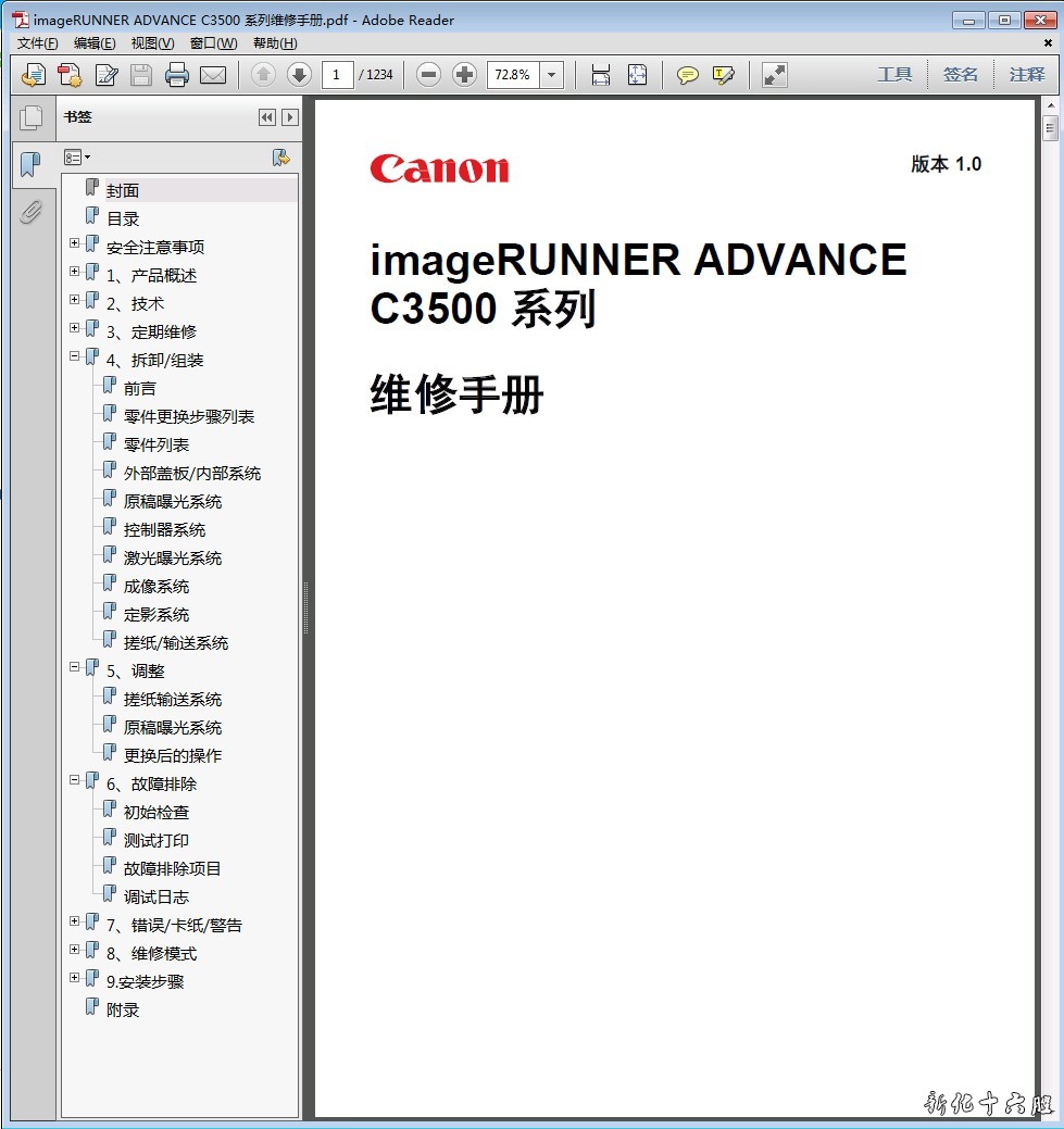 佳能 IR ADVANCE C3530 C3525 C3520 彩色复印机中文维修手册