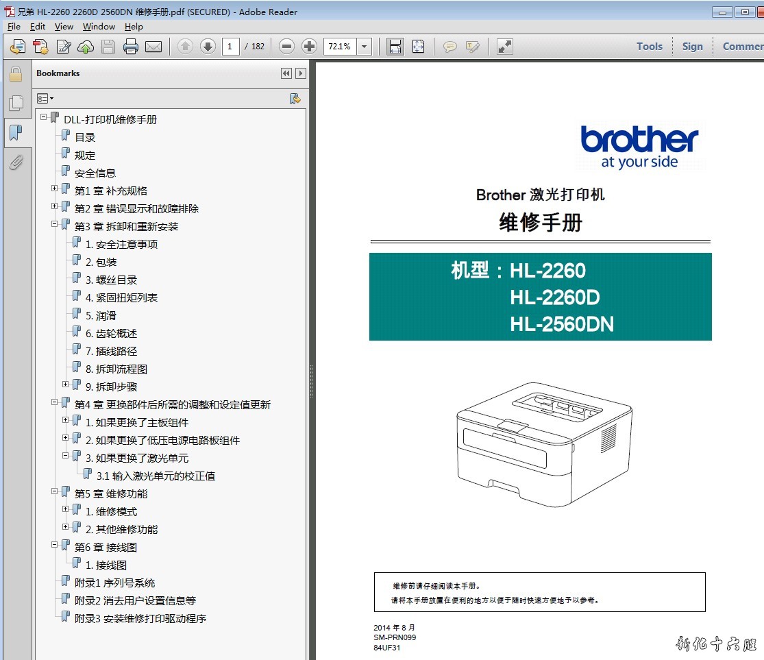 兄弟 HL-2260 2260D 2560DN 打印机中文维修手册 维修资料语 言:中文格 式:PDF电子版,无加密页 数:182页手册内容详实,图文并茂,是维修人员的好帮手,有了维修手册,这款机子的拆卸、故障排除您就不用再发愁了!即使是普通的用户,也可以根据维修手册解决简单的故障。