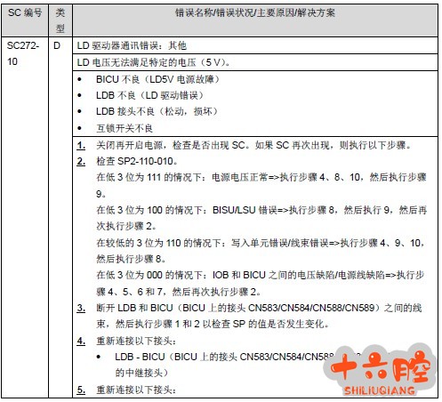 开机后显示“正在检查机器状态…请稍后。”然后重启,重启后出现SC272-10 代码。 调整过程 1)查询SC272-10 代码注释: