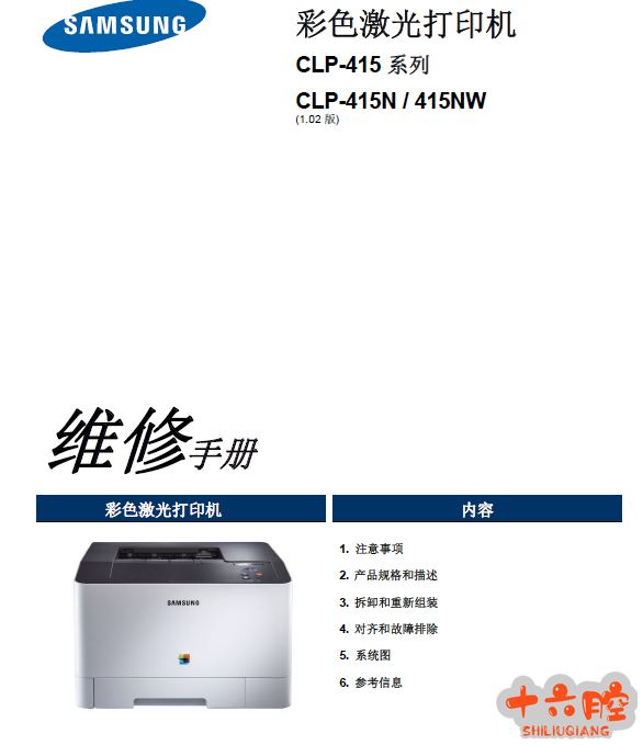三星CLP-415N,415NW彩色激光打印机中文维修手册 三星CLP-415N,415NW英文维修手册 彩色激光打印机 CLP-415 系列 CLP-415N / 415NW (1.02 版)