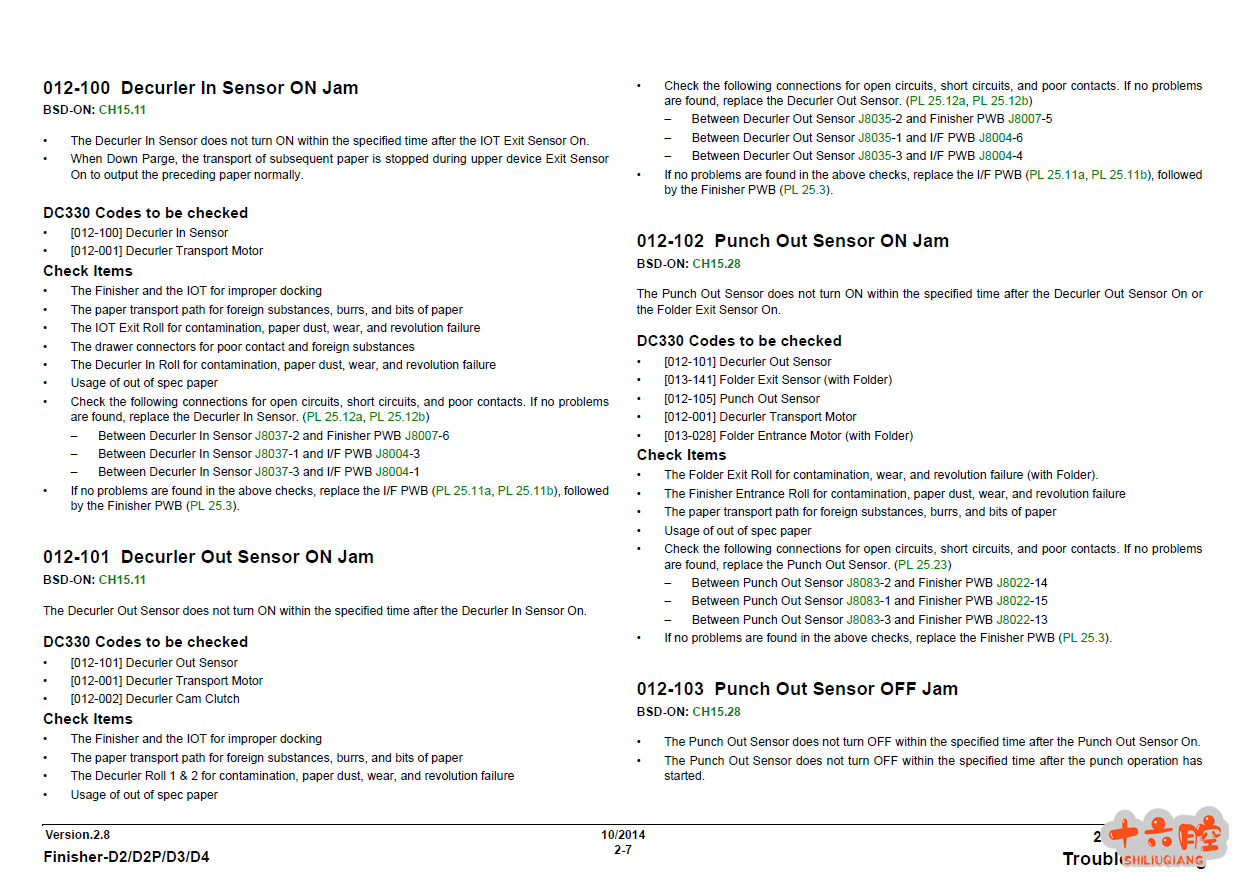 施乐C7780 C6680 C5580整理器装订器分页器英文维修手册 施乐 D2 D2P D3 D4 整理器装订器分页器英文维修手册