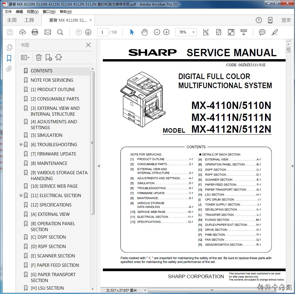 施乐Apeos 2560_3060_3560中文维修手册1.1版本